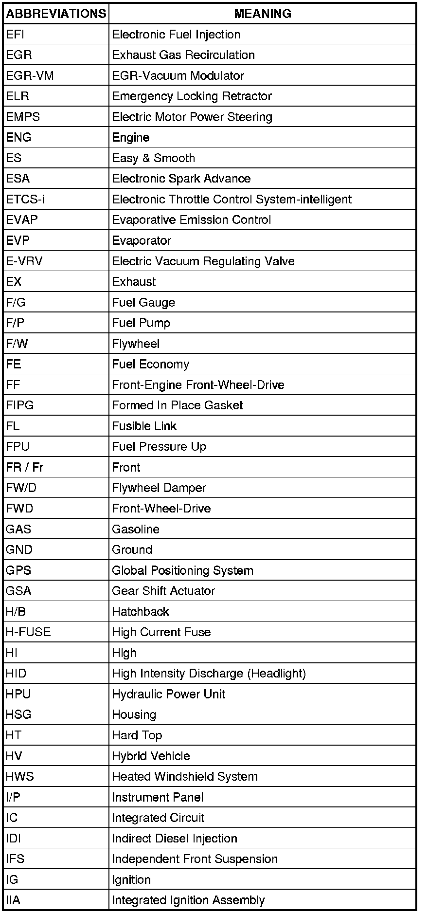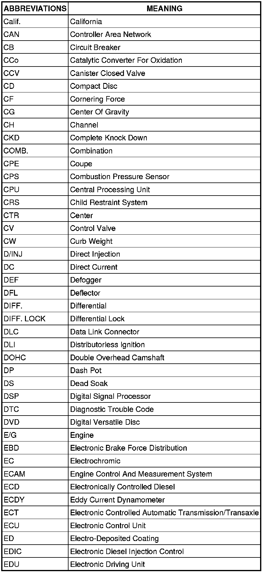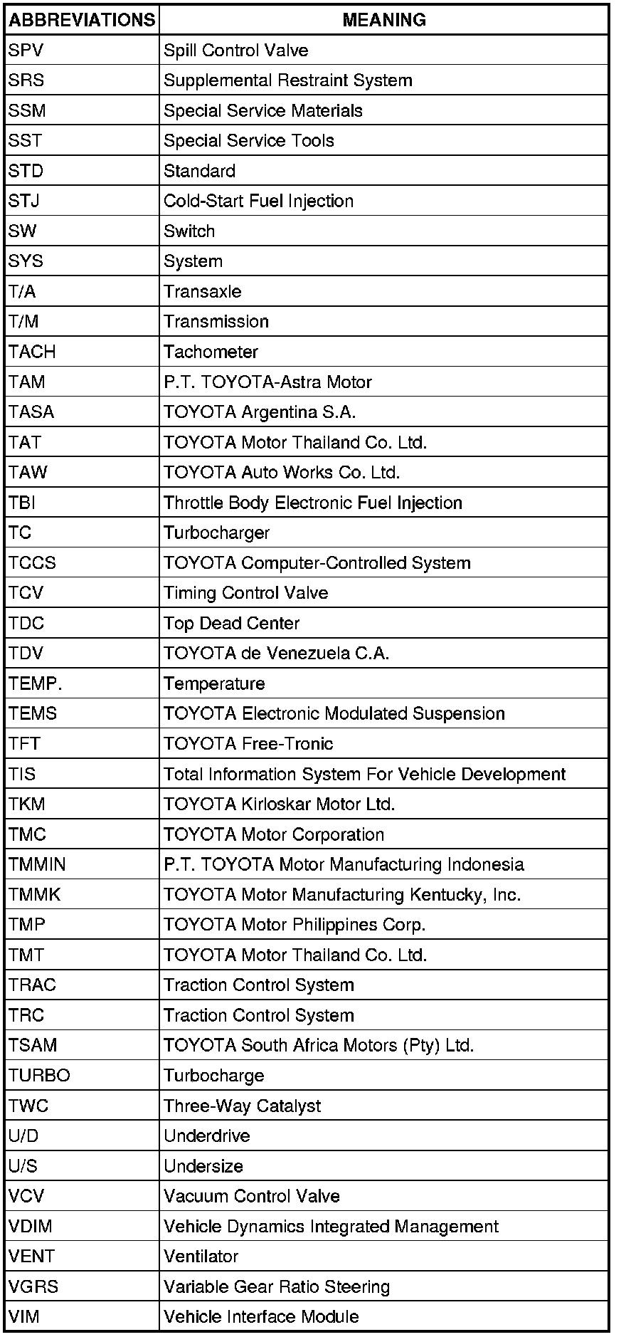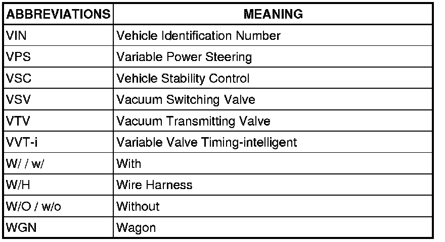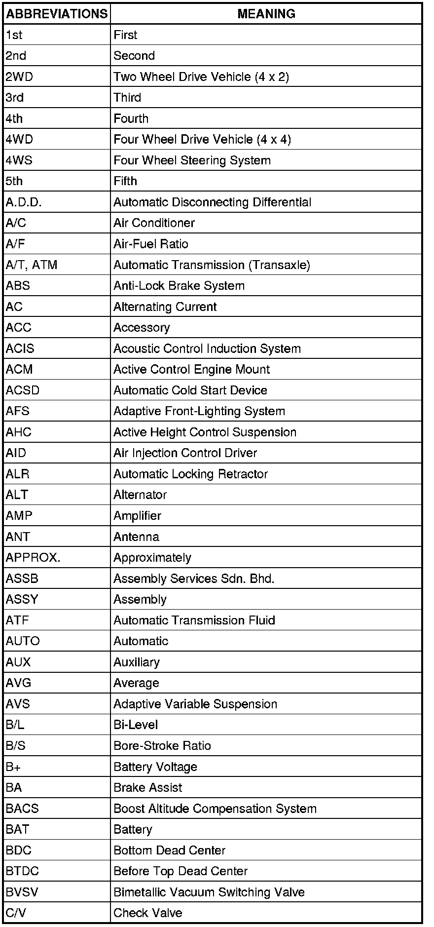 Terms - Abbreviations Used In Service Procedures