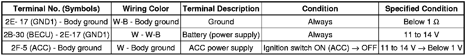 If the result is not as specified, the Main body ECU may have a malfunction.