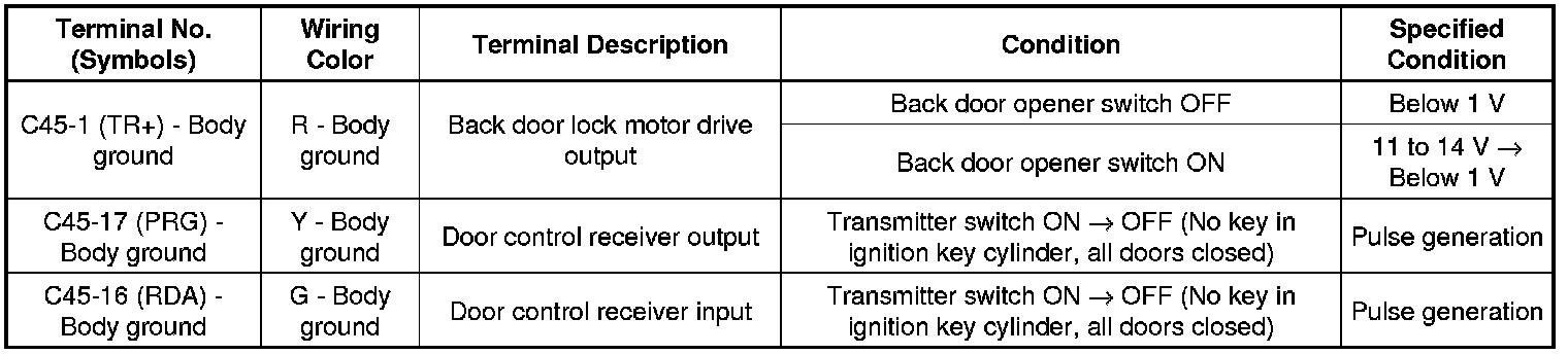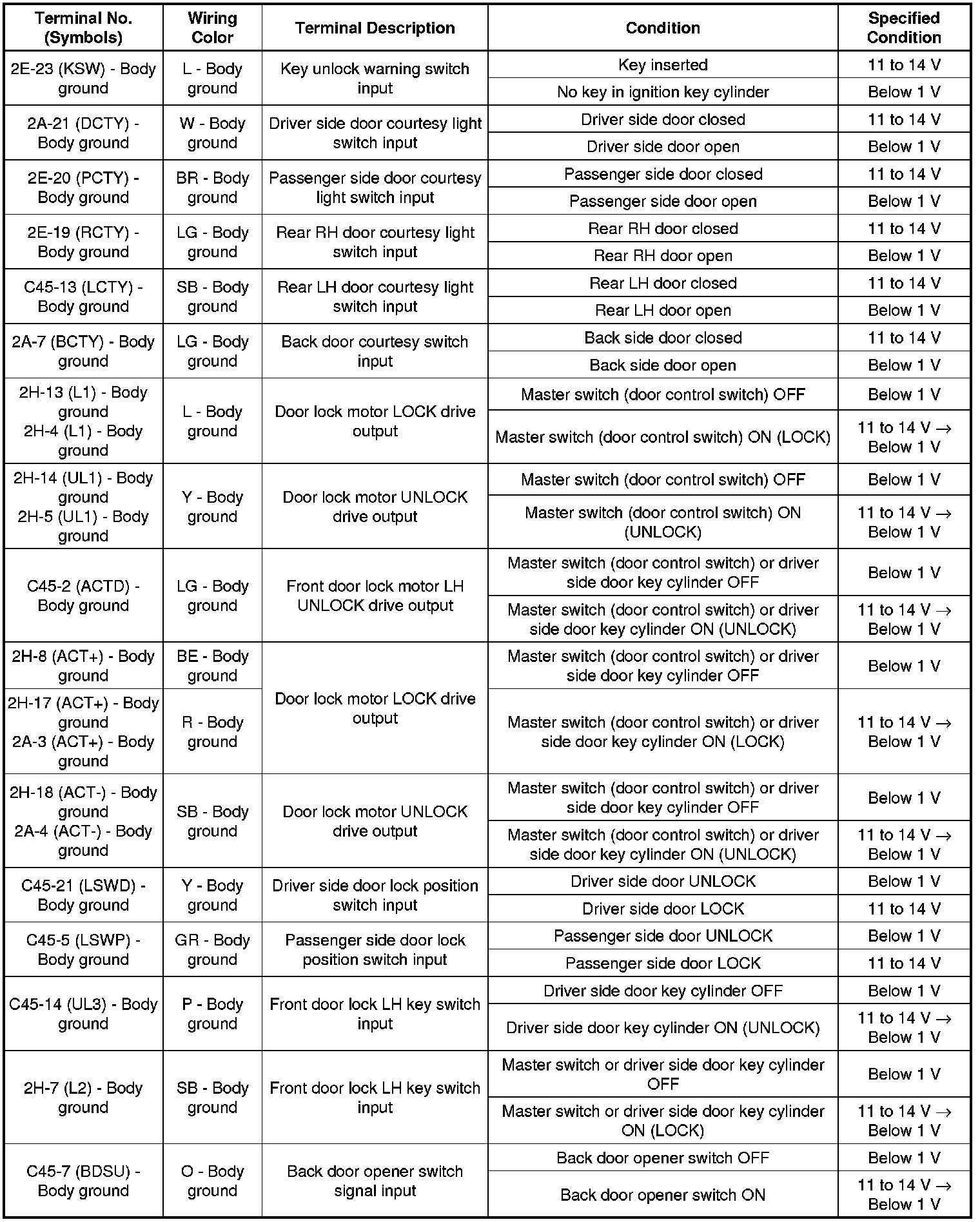 DOOR LOCK: POWER DOOR LOCK CONTROL SYSTEM: TERMINALS OF ECU