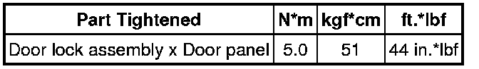 SERVICE SPECIFICATIONS: DOOR LOCK: TORQUE SPECIFICATIONS