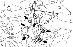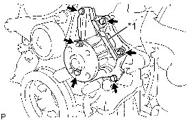 ENGINE WATER PUMP ASSEMBLY (for TMC Made)Install the engine water pump and clamp bracket with the 4 bolts and 2 nuts.