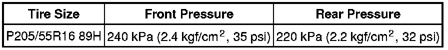 Cold Tire Inflation Pressure: