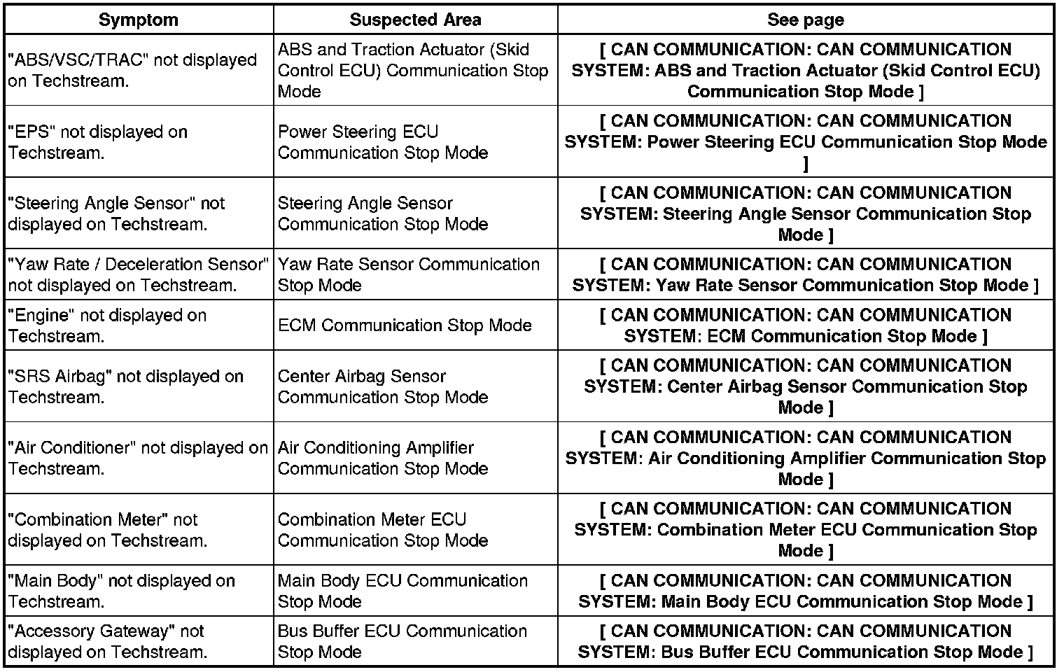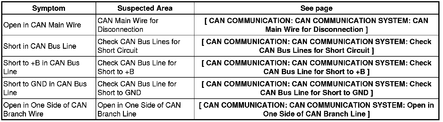 CAN COMMUNICATION: CAN COMMUNICATION SYSTEM: PROBLEM SYMPTOMS TABLE