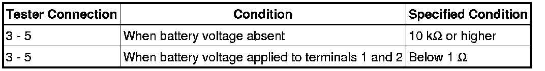 If the result is not as specified, replace the relay.