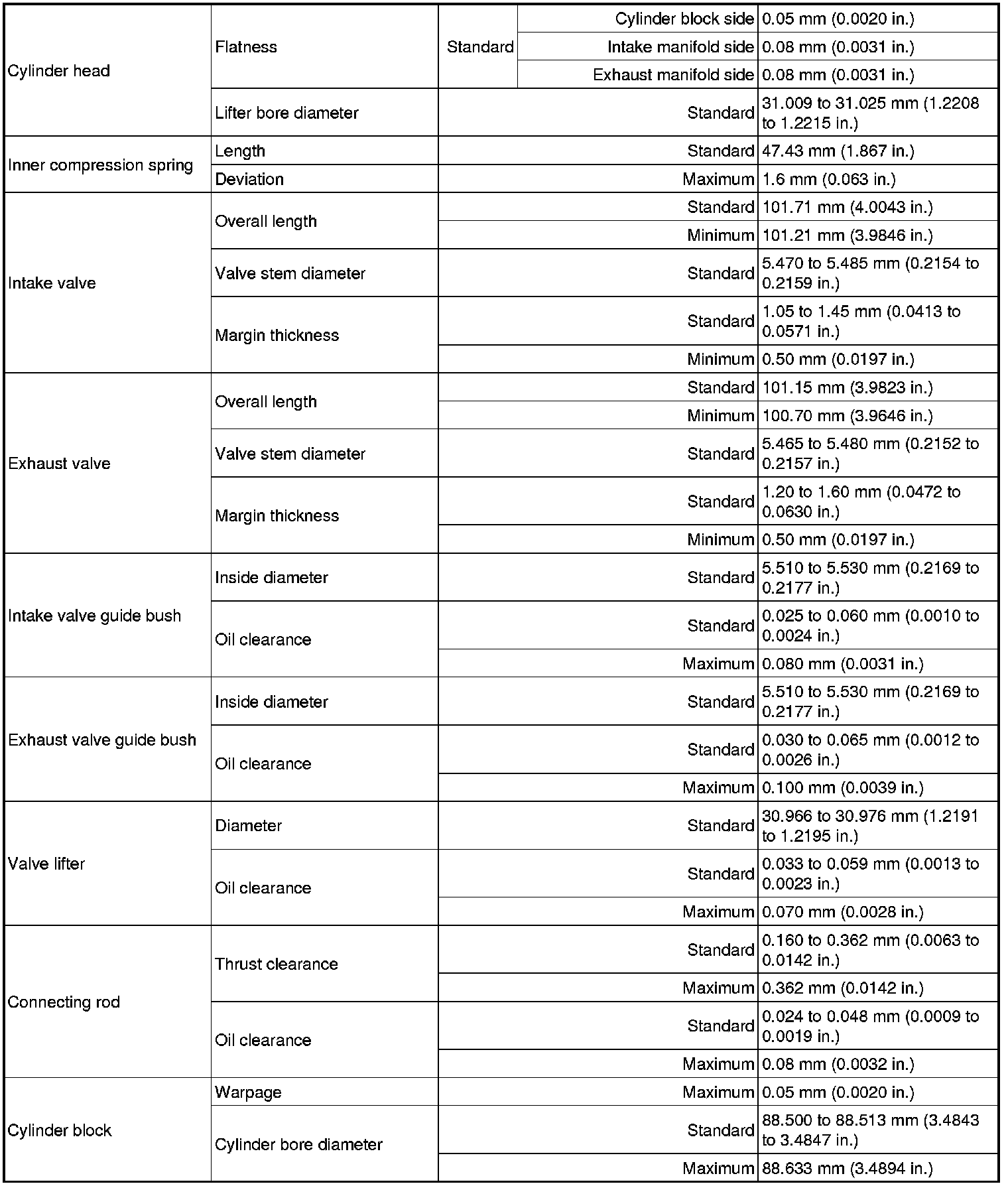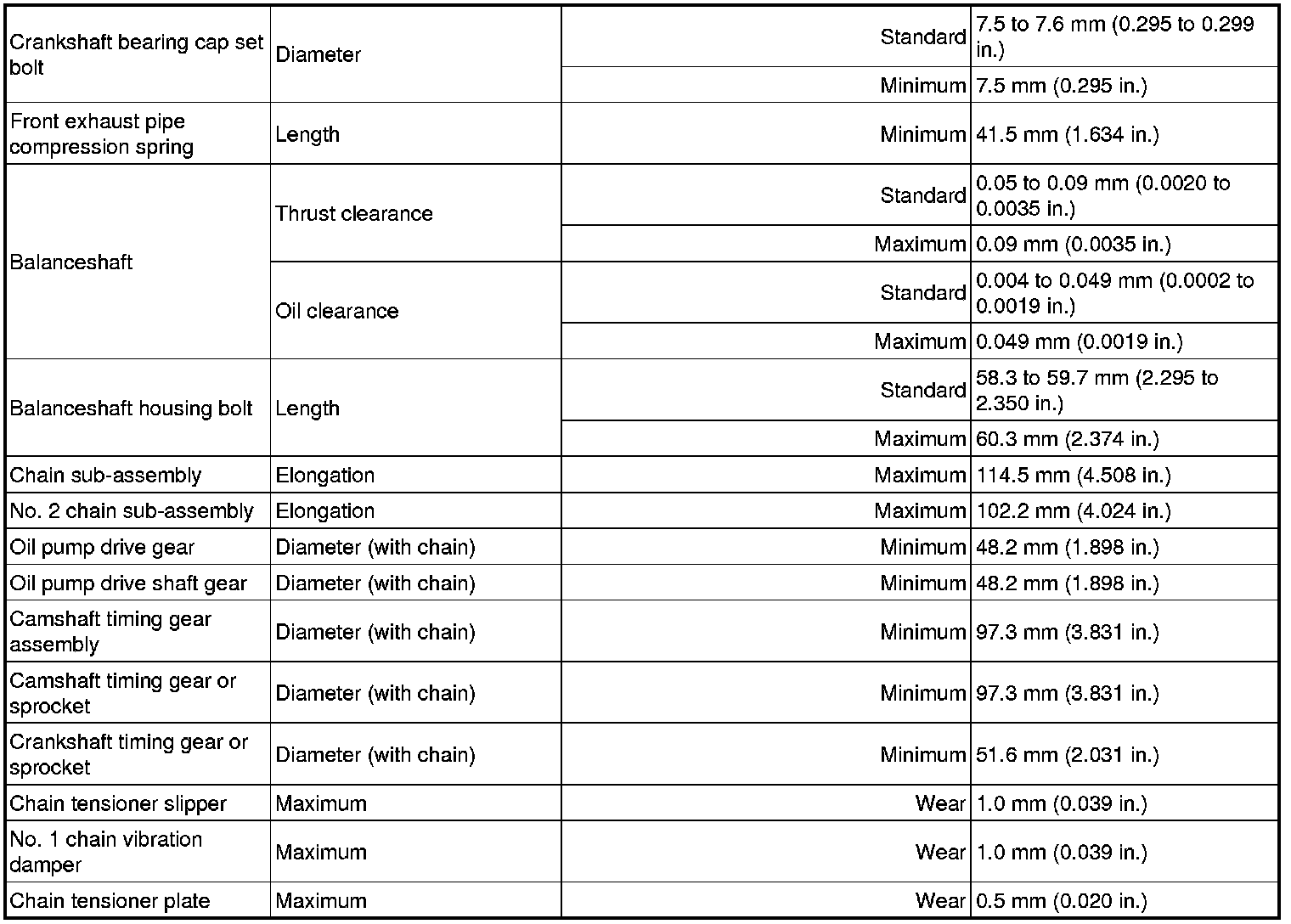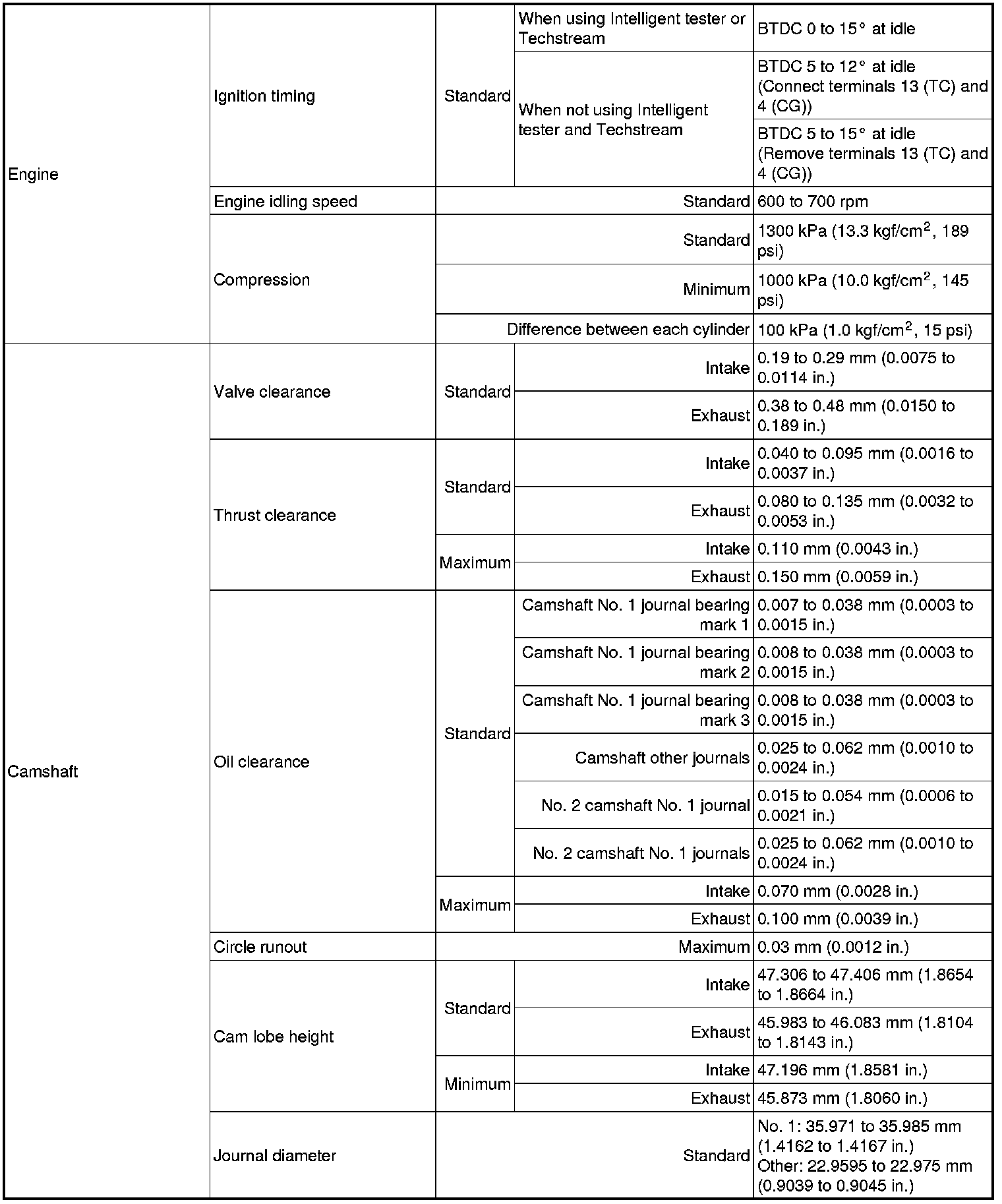 SERVICE SPECIFICATIONS: 2AZ-FE ENGINE MECHANICAL: SERVICE DATA