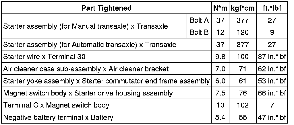 SERVICE SPECIFICATIONS: 2AZ-FE STARTING: TORQUE SPECIFICATIONS