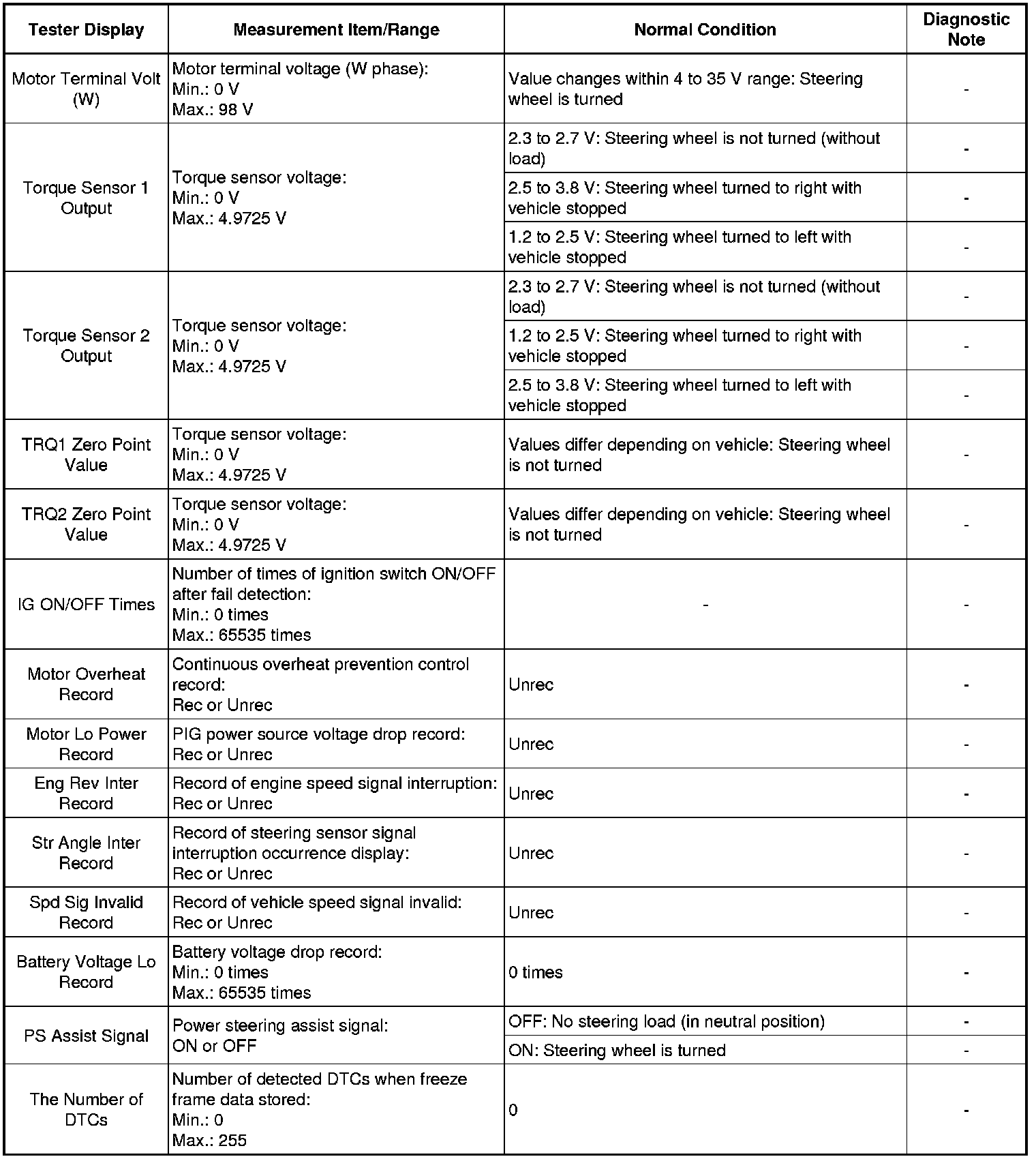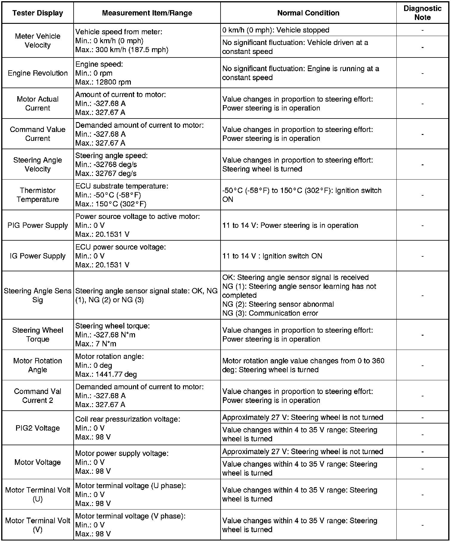 POWER STEERING: POWER STEERING SYSTEM: DATA LIST / ACTIVE TEST