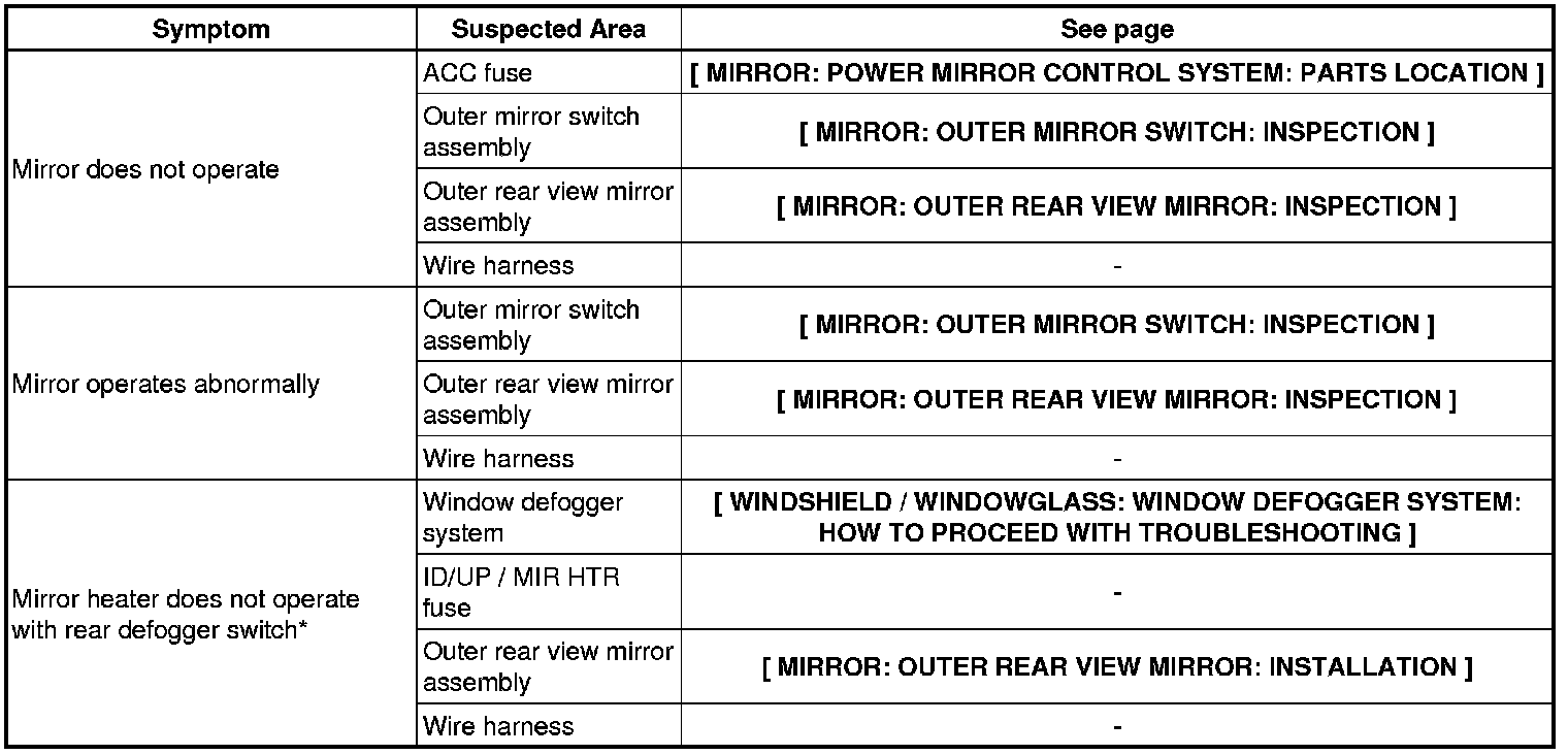 MIRROR: POWER MIRROR CONTROL SYSTEM: PROBLEM SYMPTOMS TABLE