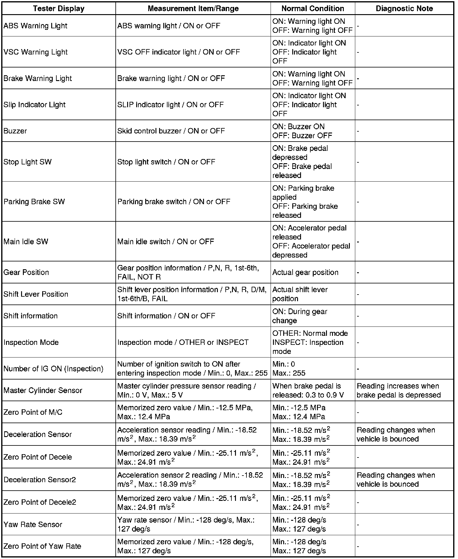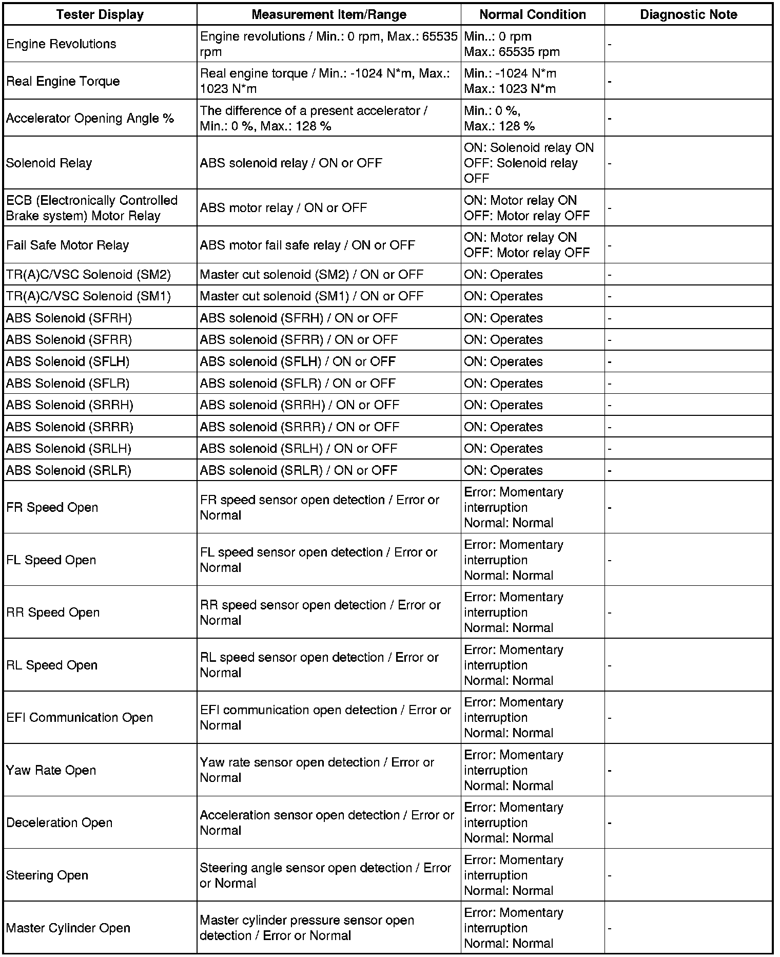 Using a Techstream to read the Data List allows the values or states of switches, sensors, actuators and other items to be read without removing any parts. This non-intrusive inspection can be very useful because intermittent conditions or signals may be discovered before parts or wiring is disturbed. Reading the Data List information early in troubleshooting is one way to save diagnostic time.