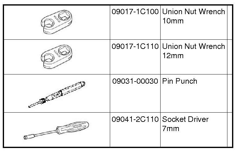 PREPARATION: BRAKE: RECOMMENDED TOOLS