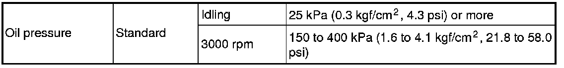Engine Oil Pressure: Specifications