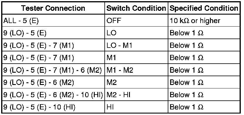 (1) Measure the resistance according to the value(s) in the table below.
