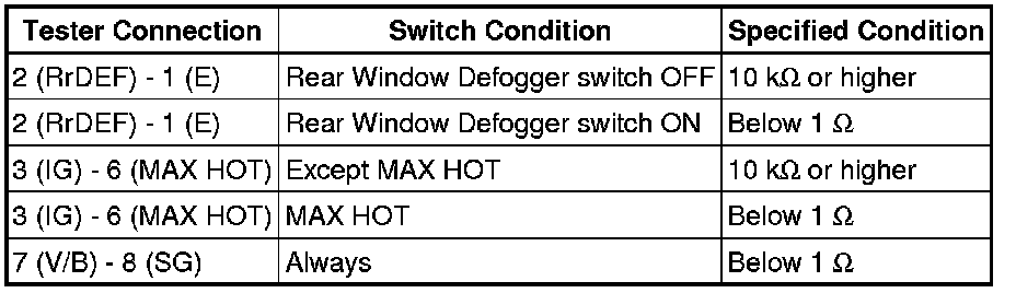 (2) Push the rear window defogger switch in and check that the indicator lights up.
