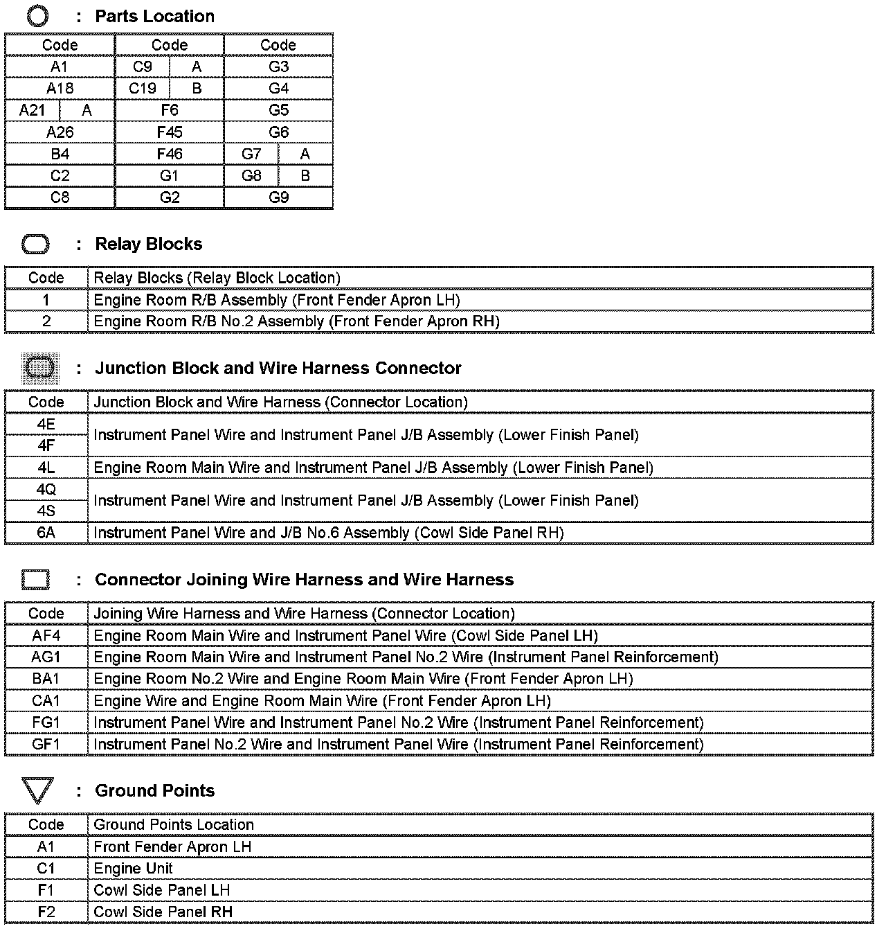 Locations: The locations of components, connectors, ground points, and splices referred to within these diagrams can be found at Vehicle Locations. Locations