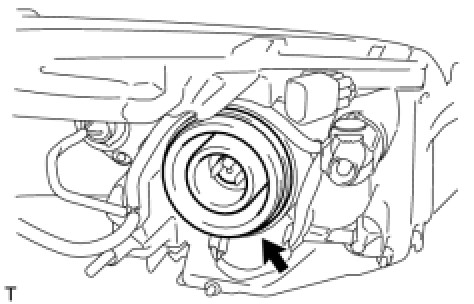 (b) Push the set spring, and pull it in the directions indicated by the arrow in the illustration, to disengage it.