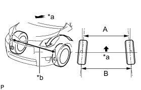 (d) Put tread center marks on the rearmost points of the front wheels and measure the distance between the marks (dimension B).