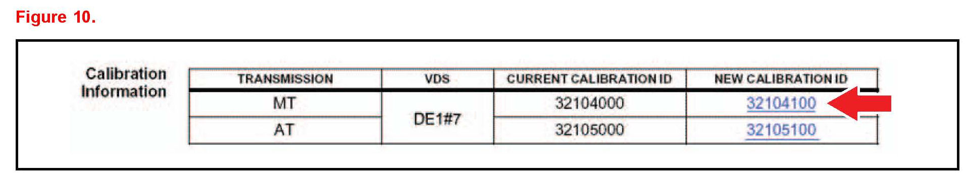 F. Available calibration updates are indicated by a link in the Cal. Update? column. Click the link to access the appropriate service bulletin on TIS.