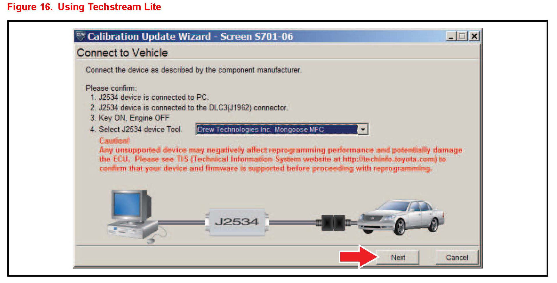 D. When using TIS Techstream select Techstream VIM as the desired programming device. Then click Next.