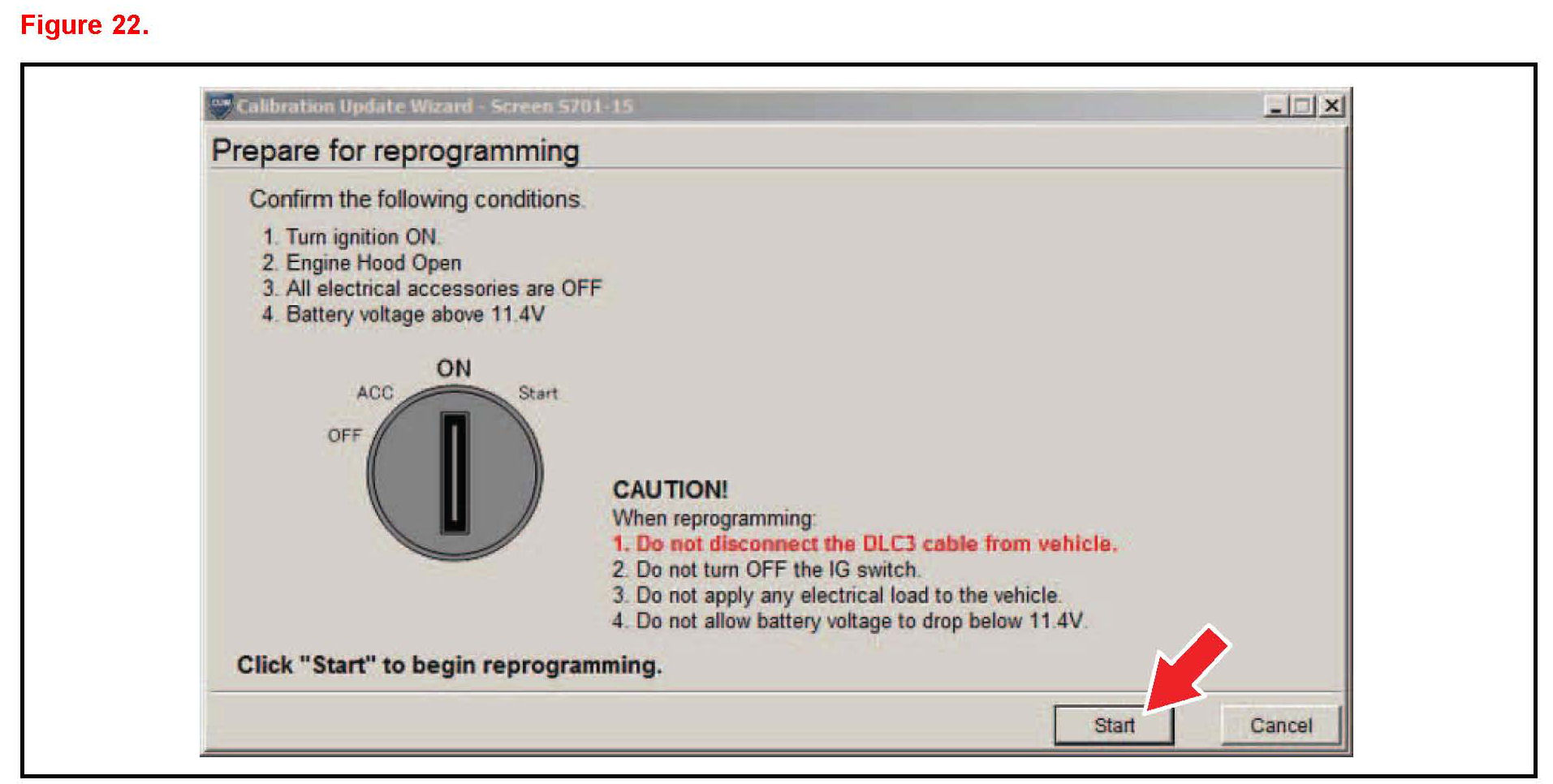 ^ Battery voltage MUST NOT FALL BELOW 11.4 volts during reprogramming. Confirm battery voltage is higher than 11.4 volts, but be sure voltage DOES NOT RISE ABOVE 16.0 volts during reprogramming.