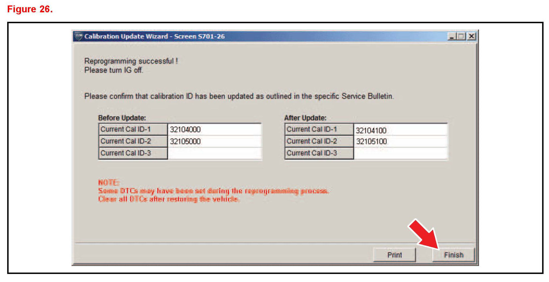 0. Confirm all calibrations were updated as specified in the service bulletin. Then click Finish.