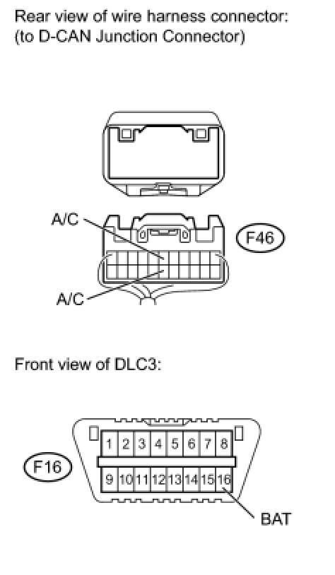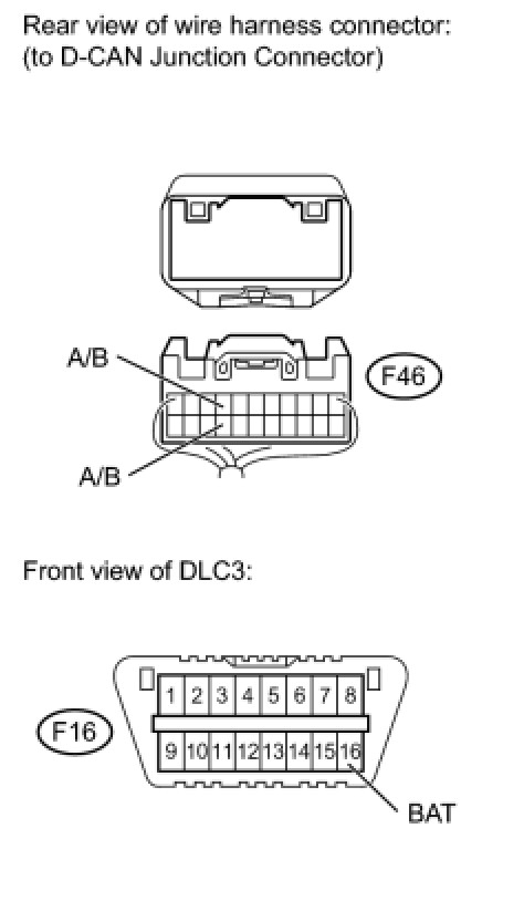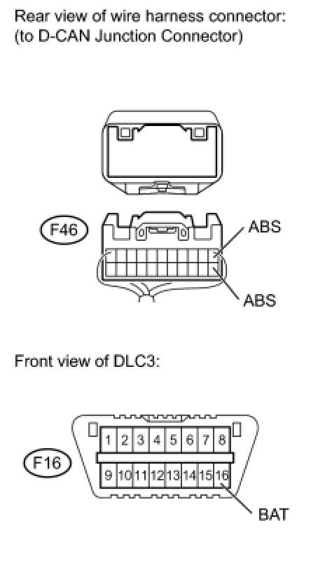 The resistance must be measured after the F46 D-CAN junction connector is disconnected.