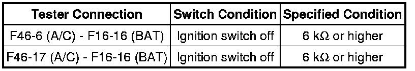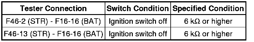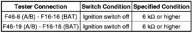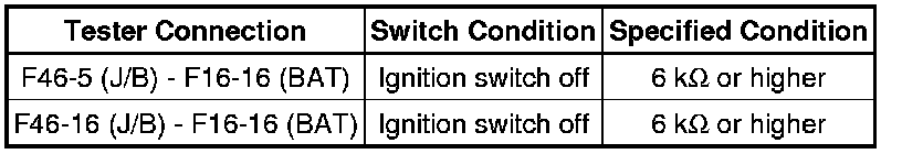 * Before measuring the resistance, leave the vehicle as is for at least 1 minute and do not operate the ignition switch, any other switches or the doors. If doors need to be opened in order to check connectors, open the doors and leave them open.