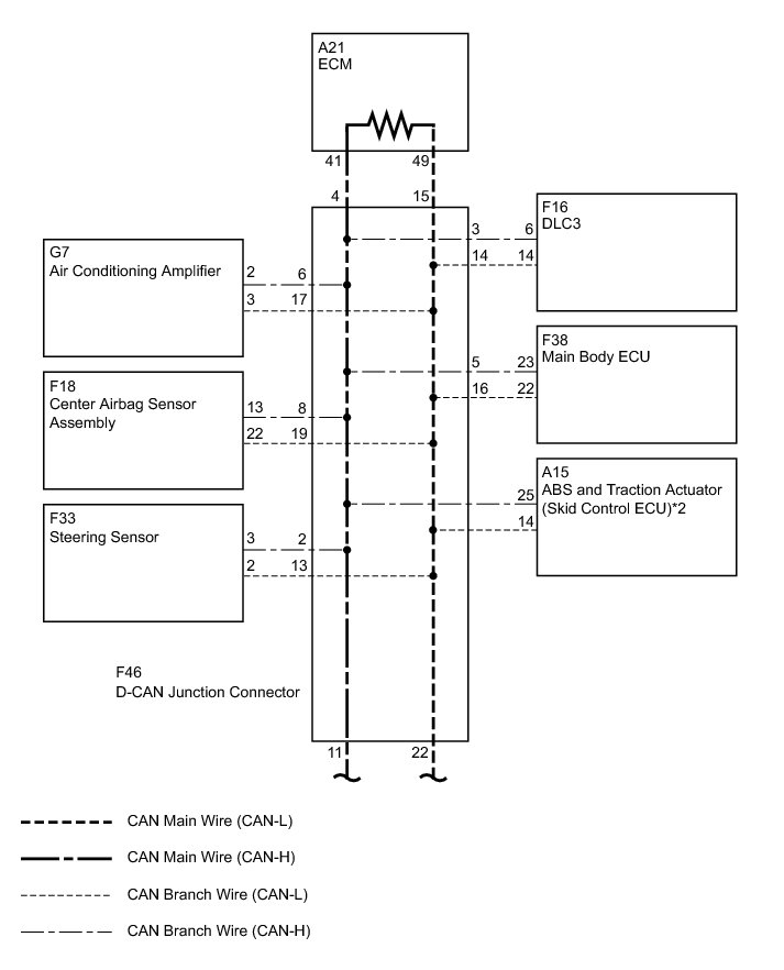 1. CHECK CAN BUS WIRE (MAIN WIRE FOR DISCONNECTION, CAN BUS LINES FOR SHORT CIRCUIT)