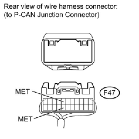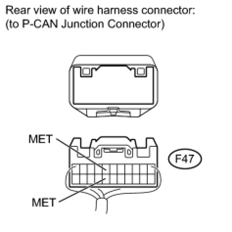 The resistance must be measured after the F47 P-CAN junction connector is disconnected.