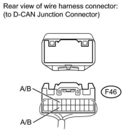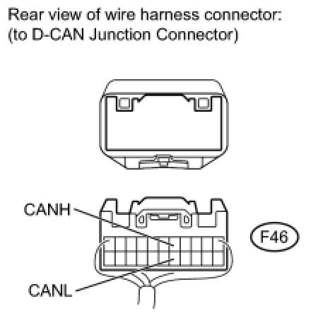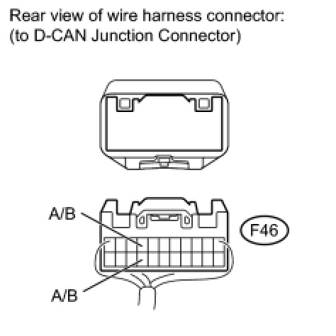 The resistance must be measured after the F46 D-CAN junction connector is disconnected.