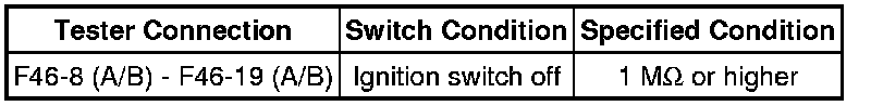 * Before measuring the resistance, leave the vehicle as is for at least 1 minute and do not operate the ignition switch, any other switches or the doors. If doors need to be opened in order to check connectors, open the doors and leave them open.