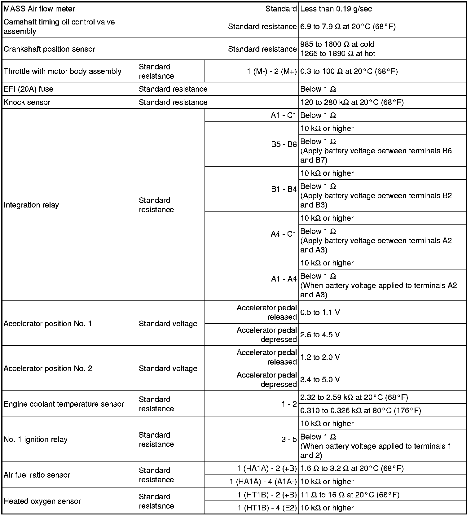SERVICE SPECIFICATIONS: 2ZR-FE ENGINE CONTROL SYSTEM: SERVICE DATA