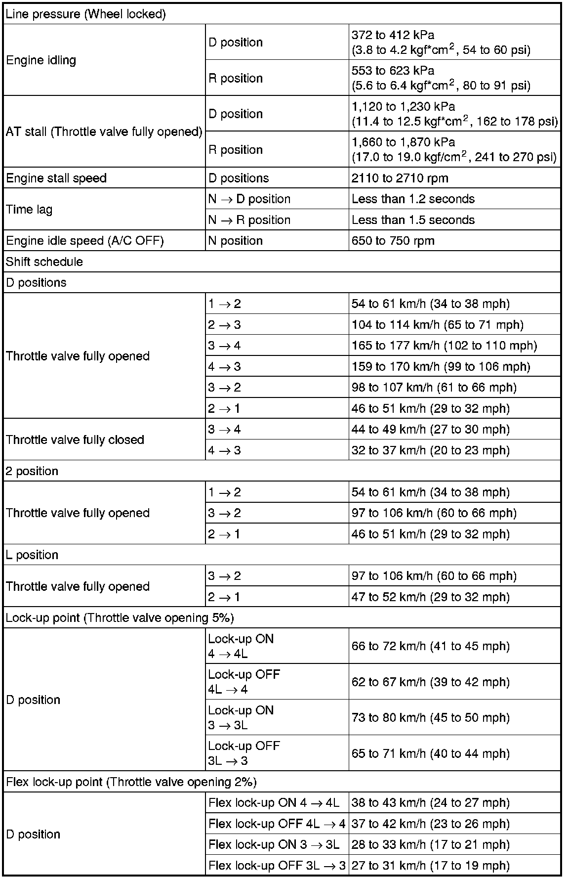 SERVICE SPECIFICATIONS: U341E AUTOMATIC TRANSAXLE: SERVICE DATA
