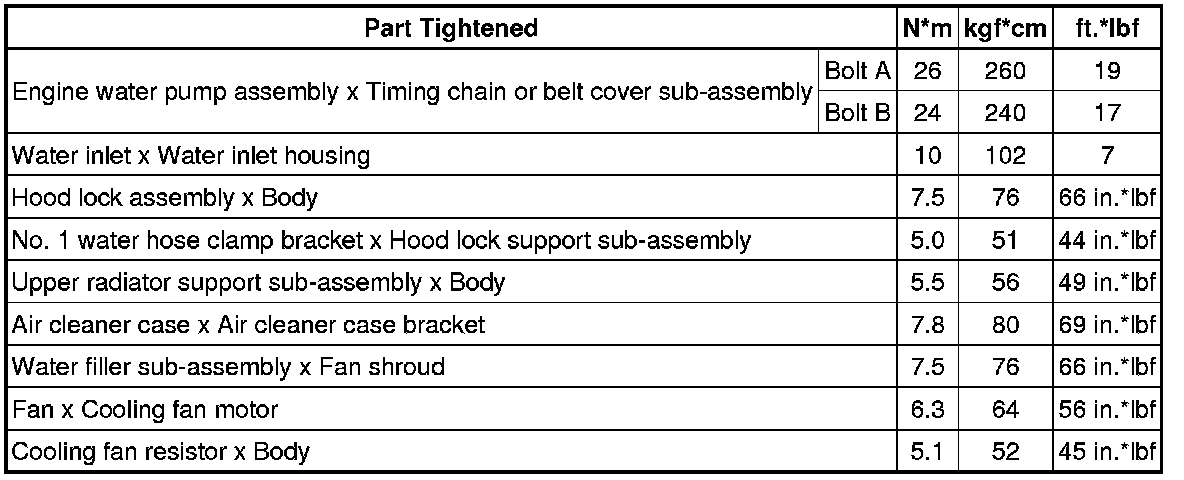 SERVICE SPECIFICATIONS: 2ZR-FE COOLING: TORQUE SPECIFICATIONS