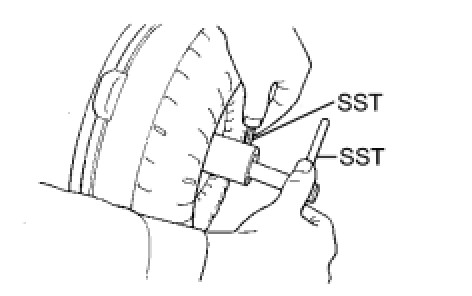 (1) Install SST so that it fits into the notch on the converter hub and the notch on the outer race of the one-way clutch.