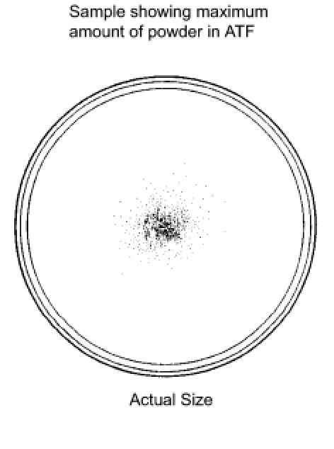 Fine powder exceeding the sample limit is identified in ATF.