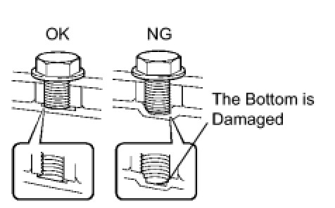 (1) When any marks due to interference are found on the end of the bolt for the torque converter clutch and on the bottom of the bolt hole, replace the bolt and torque converter clutch.