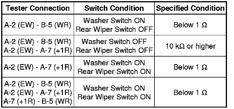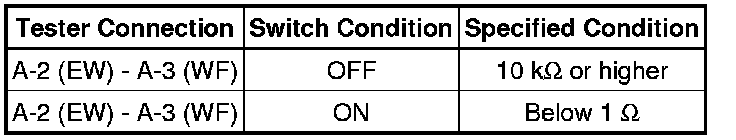 If the result is not as specified, replace the windshield wiper switch.