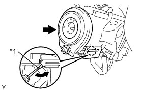 (b) Using a screwdriver with its tip wrapped with protective tape, disengage the 2 claws and remove the transponder key amplifier.