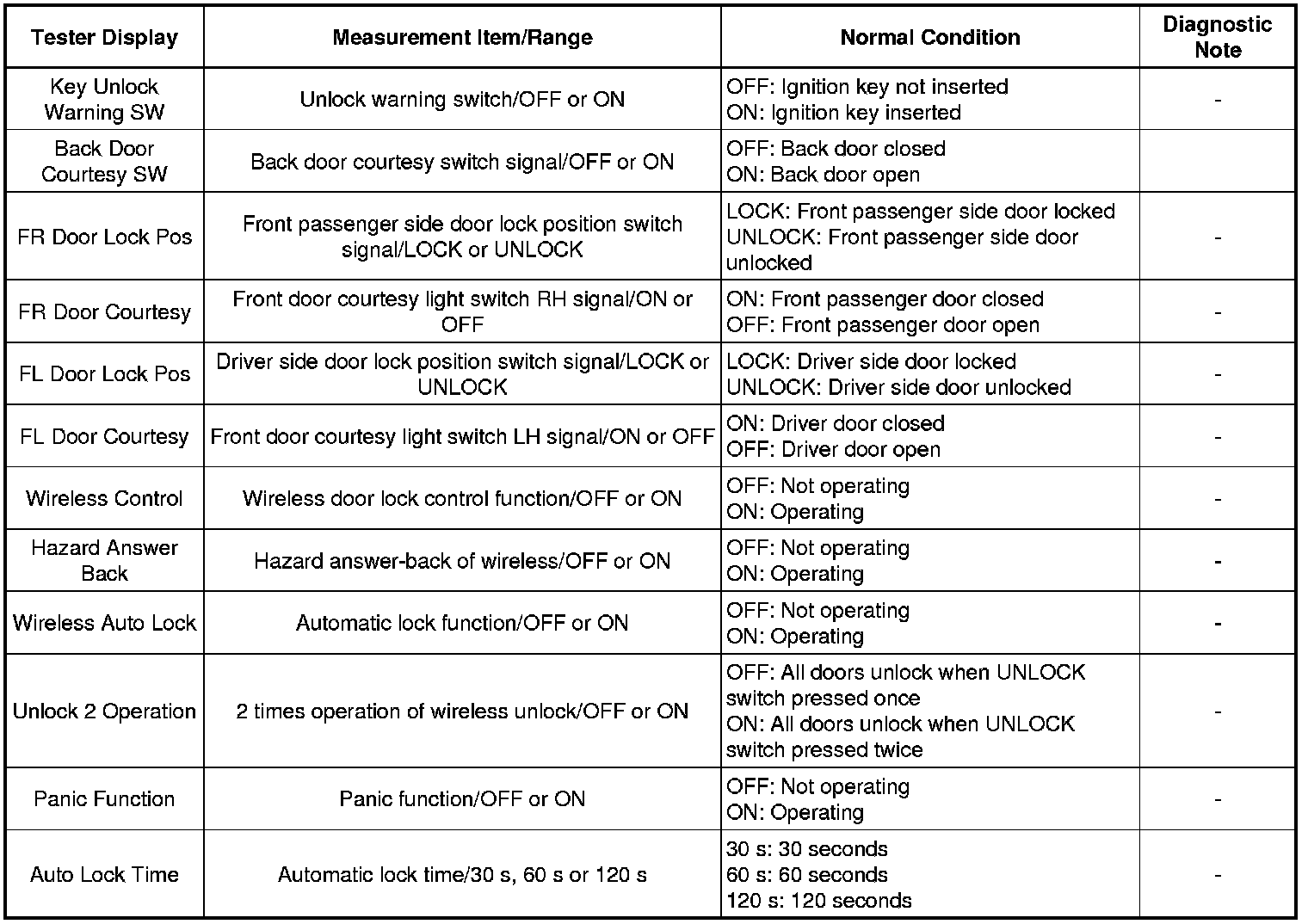 DOOR LOCK: WIRELESS DOOR LOCK CONTROL SYSTEM: DATA LIST / ACTIVE TEST