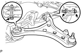 (a) Provisionally tighten the front lower suspension arm sub-assembly with the 2 bolts and the nut.