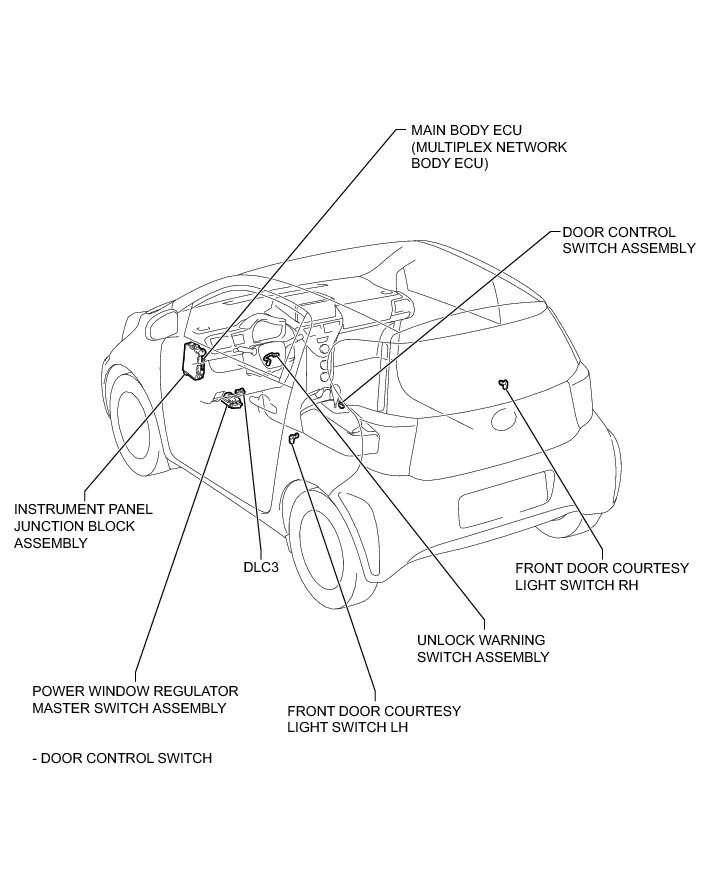 DOOR LOCK: POWER DOOR LOCK CONTROL SYSTEM: PARTS LOCATION
