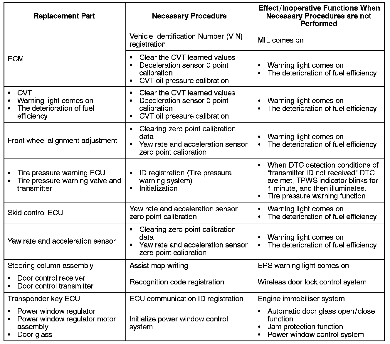 PROCEDURES NECESSARY WHEN ECU OR OTHER PARTS ARE REPLACED