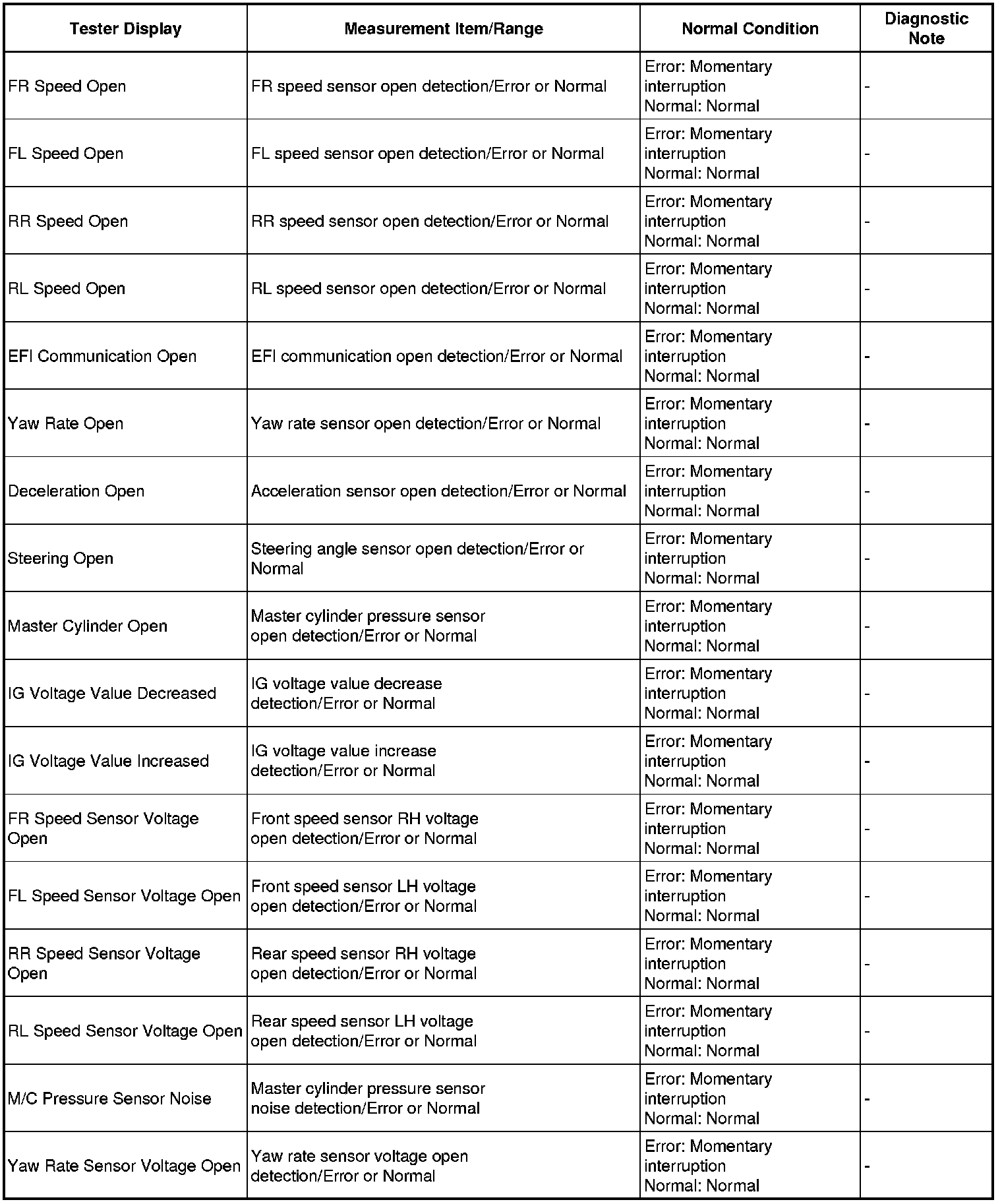 * The Error display on the Techstream will remain displayed for 1 second after the harness signal changes from momentary interruption (open circuit) to the normal condition.