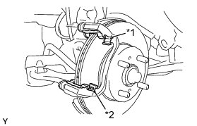 (a) Install the No. 1 front disc brake pad support plate and No. 2 front disc brake pad support plate to the disc brake cylinder mounting.