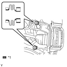 (a) Apply a light layer of lithium soap base glycol grease to the entire circumference of 2 new front disc brake bushing dust boots as shown in the illustration.