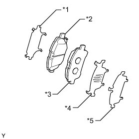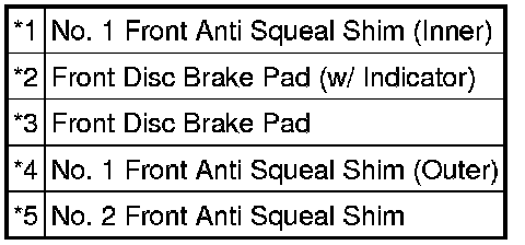 (a) Install the 2 No. 1 front anti squeal shims and No. 2 front anti squeal shim to each brake pad.