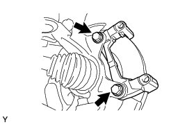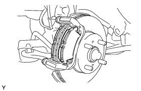 (a) Remove the No. 1 front disc brake pad support plate and No. 2 front disc brake pad support plate from the front disc brake cylinder mounting.