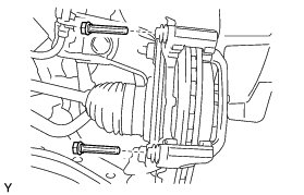 (a) Remove the 2 bolts and front disc brake cylinder mounting from the steering knuckle.