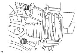 (a) Remove the 2 front disc brake bushing dust boots from the disc brake cylinder mounting.