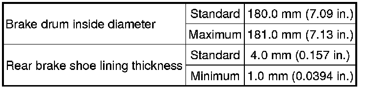 SPECIFICATIONS: BRAKE (REAR): SERVICE DATA